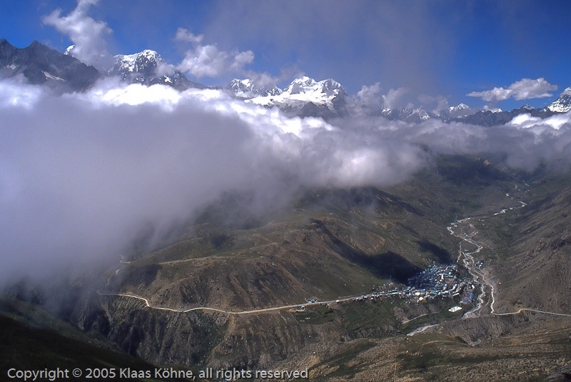 Blick aus etwa 4400m Höhe hinunter auf Nyalam