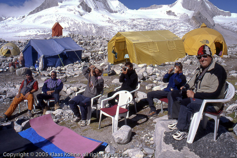Drei Tage müssen wir im Basislager pausieren, um uns vom Aufstieg in das Lager 2 zu erholen. Zum Beispiel kann man die Aktivitäten der anderen Gruppen am Berg beobachten.