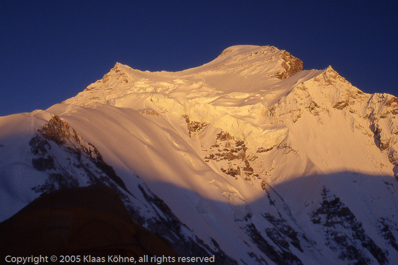 Blick aus dem Lager 1 hinauf zur Gipfelregion. Da oben wird sich in den nächsten Tagen alles entscheiden...