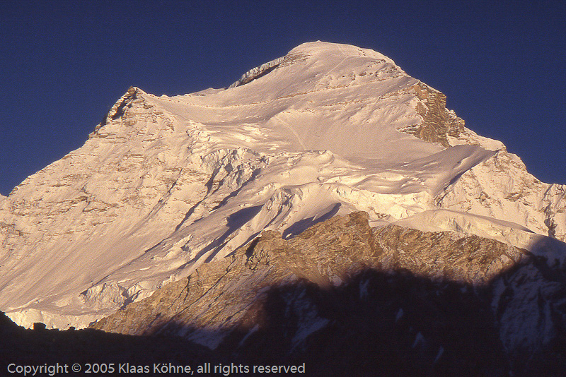 Der letzte Abend im Basecamp. Zum x-ten Mal gehe ich die Route im Geiste ab. Vor vier Wochen war es einfach ein großer Berg, dessen Bilder und Routenbeschreibungen man aus dem Internet und Büchern kannte. Jetzt sind mit vorher abstrakten Begriffen wie Gyabrag-Gletscher, Killerhang, Seracriegel, Gelbes Band, sind mit diesen Schneehängen unauslöschliche Erinnerungen verbunden. Unsere Spuren im Gipfelbereich sind noch deutlich sichtbar. Leider haben wir erfahren, dass heute ein Amerikaner auf etwa 7400m abgestürzt ist. Die Nachricht belastet die Atmosphäre beim letzten Dinner im Lager. Lhakpa und Pasang haben sich nochmal alle Mühe gegeben. Zum Abschluss gibt´s einen "Happy Last Day"-Kuchen. In den Tischgesprächen geht es wieder fast ausschließlich um Berge, Berge, Berge. Wie seit vier Wochen schon. Scheinbar stehen einigen Teilnehmern unserer Gruppe keine anderen Themen zur Verfügung. Ich gehe lieber vor die Tür. Mittlerweile sind unsere Yaks angekommen, die morgen unser Gepäck transportieren sollen. Der Blick geht zum Berg. Cho Oyu - danke, dass ich auf deinen Gipfel durfte. Und danke, dass du mich am Leben gelassen hast. Beides war nicht selbstverständlich. Herbert Tichy, einer der Erstbesteiger hat sein Buch "Cho Oyu - Gnade der Götter" genannt. Ich weiß jetzt, was er meinte...