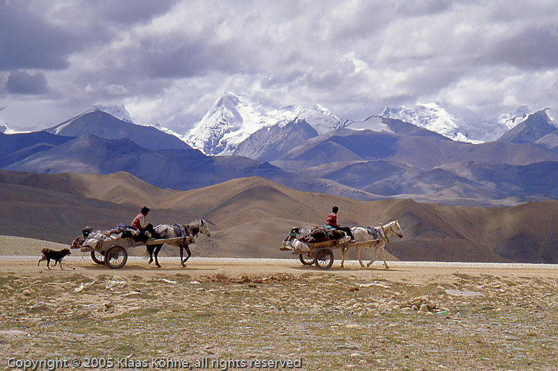 Traditioneller Verkehr kurz unterhalb der Passhöhe des Lalung Leh