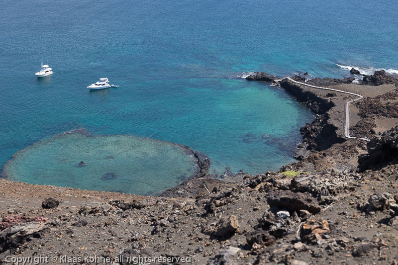 Blick hinunter zum "Hafen". Links sieht man einen versunkenen Krater.