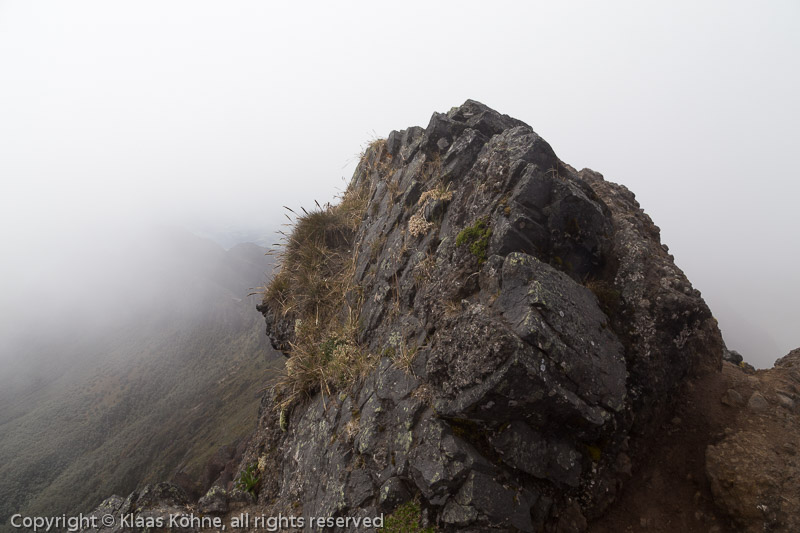 Im obersten Teil wird es etwas ungemütlich, sowohl vom Gelände als auch vom Wetter her. Schade, leider nix mit Aussicht. Immerhin, die 4631m werden der Höhenanpassung gut tun.