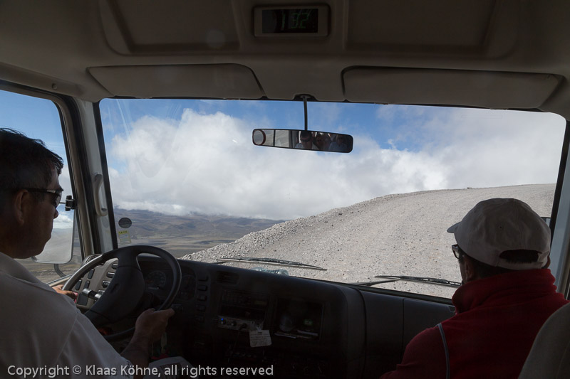 Gegen meine Gewohnheit halte ich an der Straße zum Refugio den Daumen raus. Und überraschenderweise hält gleich der erste Minibus. Noch überraschender ist, das es sich um eine deutsche Gruppe handelt, die heute Abend auch in Tambopaxi übernachtet! Damit ist dann auch die Rückfahrt gesichert - bestens!