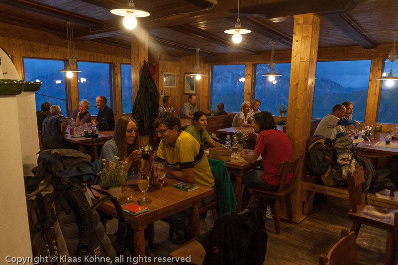Abends In der Hütte: essen, trinken, Fotos austauschen, über vergangene Touren klönen und die Taktik für morgen besprechen