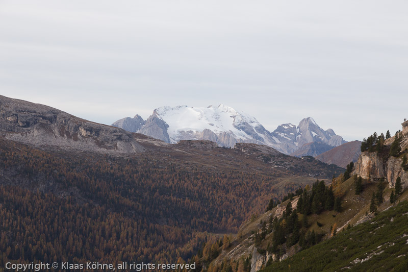 Im Westen taucht die Marmolada (3343m) auf. Natürlich werden Erinnerungen an die Besteigung vom letzten Jahr wach.