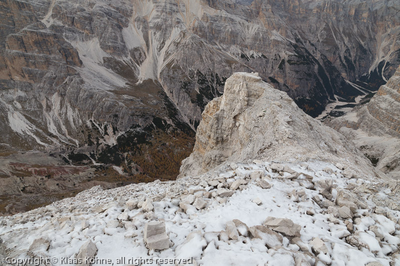 Noch ein Stück auf dem Grat, dann geht es wieder rechts in die Nordflanke. Die Ausblicke sind nach wie vor grandios!