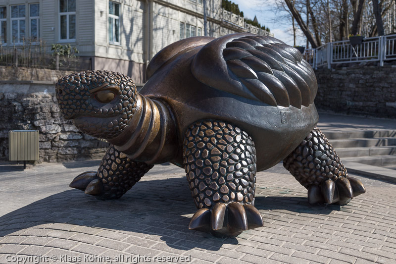 Diese mäßig freundliche Schildkröte wurde 1995 vom Bildhauer J. Bārda geschaffen und ist ein beliebtes Fotomotiv. Ihrer Attraktivität kann ich natürlich auch nicht widerstehen...
