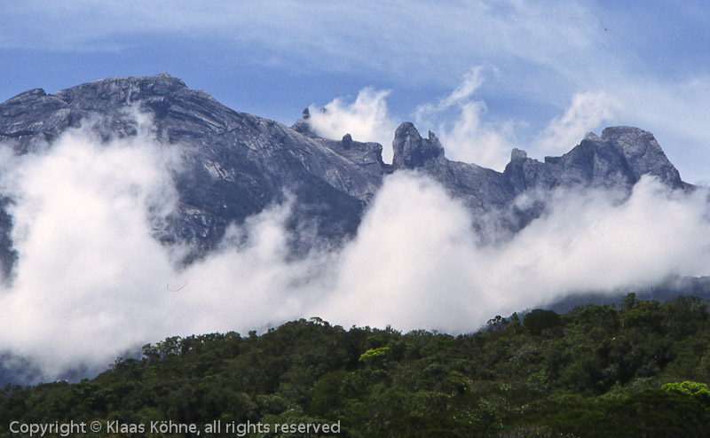 Wieder unten. Blick hinauf zur Gipfelregion.