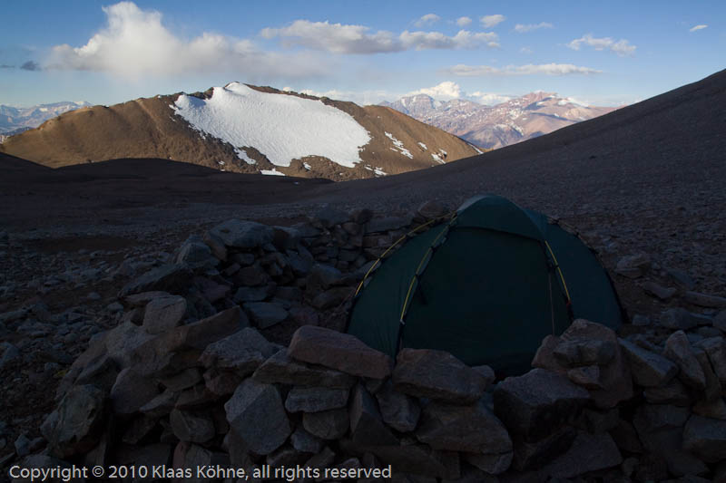 Geschafft! Mein Lager in "Pircas del Indio" auf 5100m.