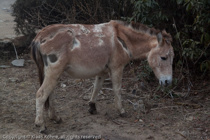 Dieses arme Muli bringt mich aber schnell wieder auf den Boden der nepalesischen Tatsachen zurück.