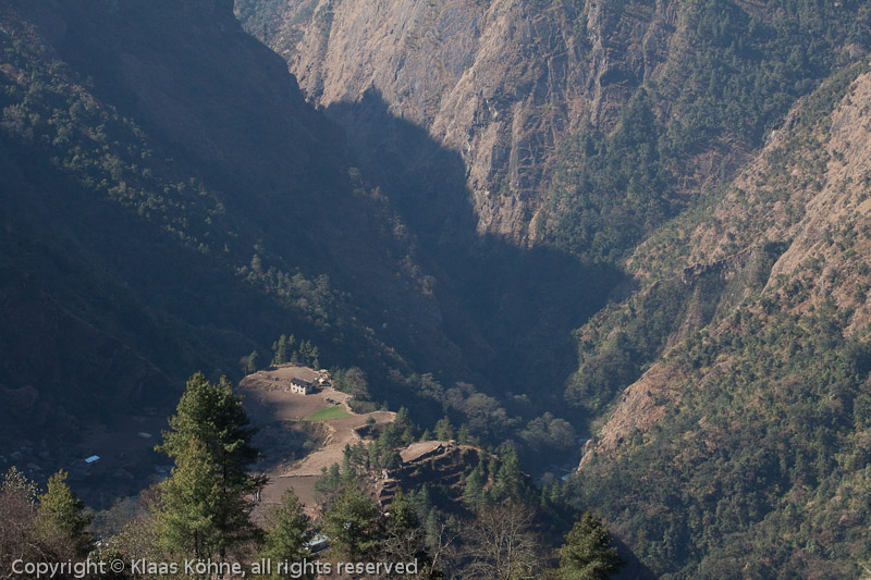 Blick hinab nach Surkhe und den Dudh Kosi.