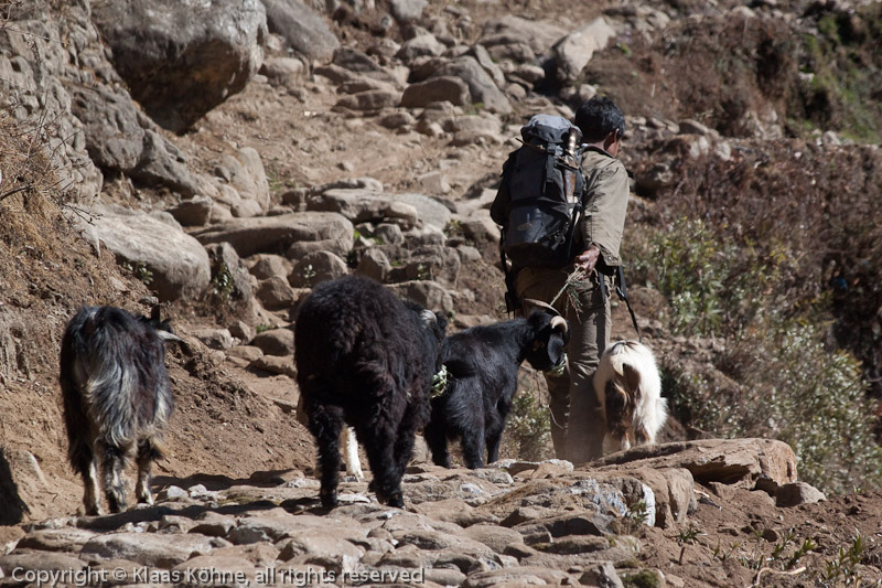 Ein Ziegenhirte (mit Rucksack, Radio und Handy) überholt mich.