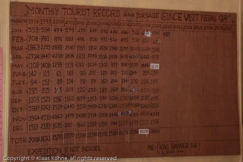 Ein Blick auf die Statistik: Im Oktober ist bei weitem der größte Andrang, über zehnmal so stark wie jetzt im Februar. Aber schon auf dem Rückweg Mitte März wird es wahrscheinlich deutlich voller sein. Meine Tour von 1998 ist auch hier festgehalten. Ich bin Teil der "1863"...