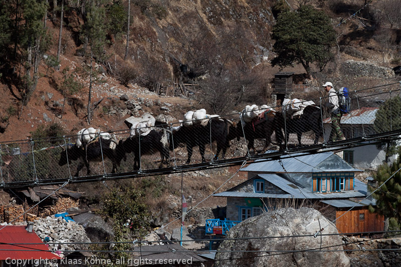 Die nächste Hängebrücke wartet. Erst Yaks bzw. Dzongs...