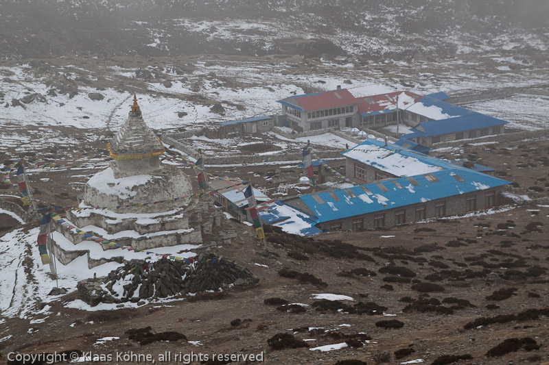 Kurz nach fünf zurück in Dingboche. In der Lodge sind außer mir nur noch zwei Typen aus Deutschland und zwei Mädels aus Belgien bzw. Neuseeland - Vorsaison eben. Es ergibt sich mal wieder eine nette Gesprächsrunde am Ofen. Alle vier wollen morgen weiter nach Lobuche, bei mir steht Chukhung auf dem Plan. Hauptsache, in der kommenden Nacht räumt es mir nicht so den Magen aus wie 1998...
