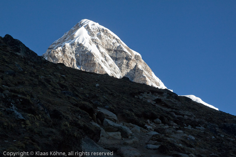 Immer auf den strahlenden Pumori zu. Und wenn jetzt noch ein liebes weibliches Wesen bei mir wäre, zum Beispiel Ellen (die ebenso schöne wie nette Amerikanerin von gestern abend) - what a wonderful world this would be...