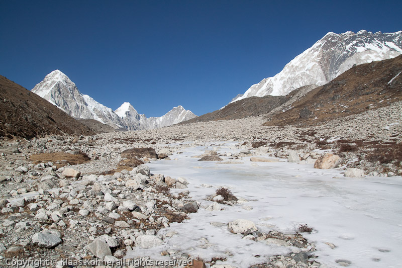 Ohne große Pause durch Lobuche und weiter abwärts auf meiner Strecke von 1998. Gegen halb vier der Blick zurück auf das obere Khumbu-Tal. Kein Zweifel: ein "Magic Place"!