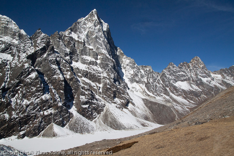 Panorama-Wanderung oberhalb des schneebedeckten Chola Tsho