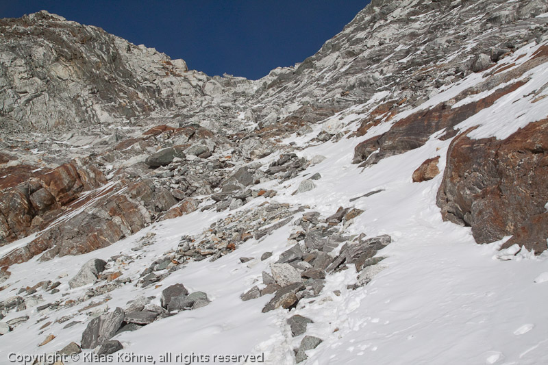 Trotz der Spur verliere ich nur langsam Höhenmeter. Safety first!