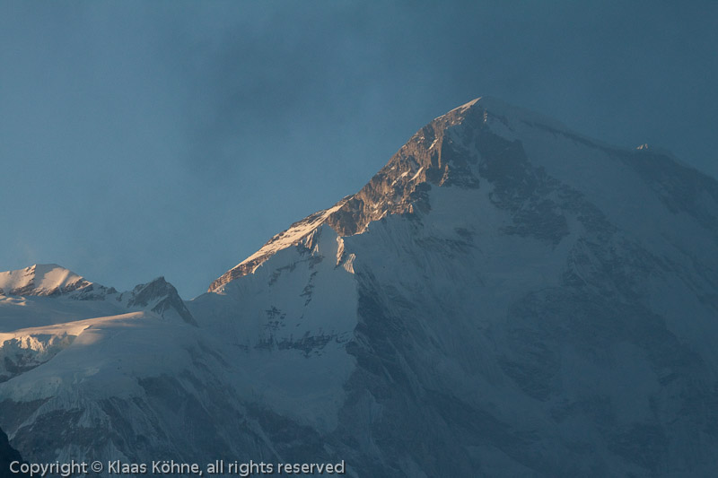 Letztes Licht auf dem Cho Oyu. Es war wieder ein harter, elebnisreicher Tag. Morgen sollte ich es mal etwas ruhiger angehen lassen - wenn ich das überhaupt noch kann...