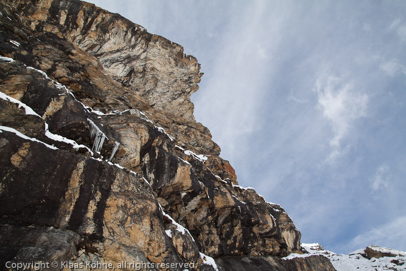 Hoffentlich kommt von diesen "getigerten Wänden" nichts runter, dicke Eiszapfen zum Beispiel...