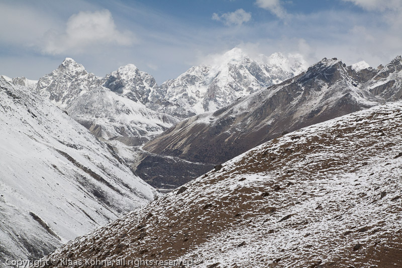 Jetzt ist auch der Blick nach Norden besser. Da hinten geht es Richtung Nangpa La, dem Grenzpass zu Tibet.