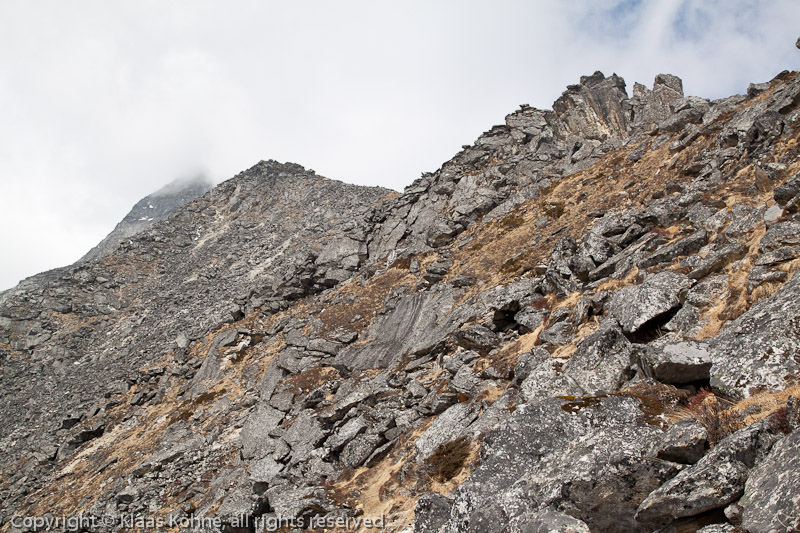 Bin ganz schön geschlaucht. Zum Glück ist bald der Grat erreicht. Leider kommen wieder die täglichen Wolken.