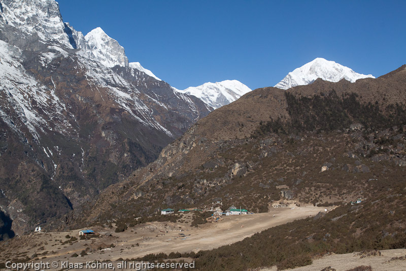 Das Flugfeld von Shyangboche. Was für ein Unterschied zum letzten Mal vor genau drei Wochen. Damals mystischer Nebel, heute Mr. Blue Sky!