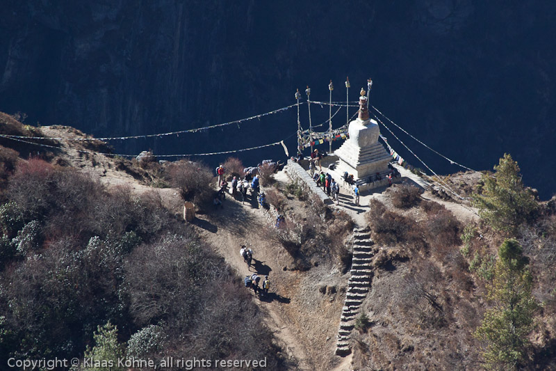 Trekker am Gedenk-Tschörten für Tensing Norgay und die anderen Sherpas der 8000er-Expeditionen