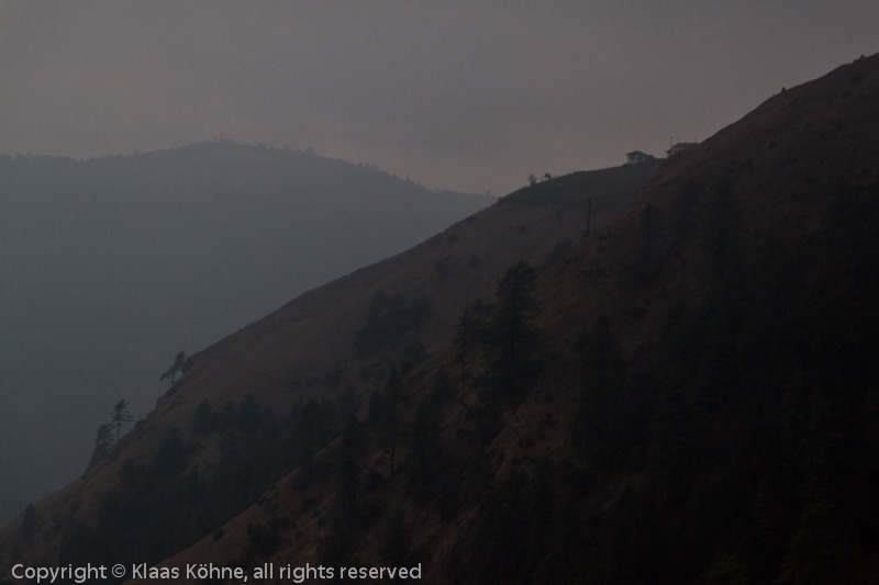 In der Ferne taucht Phurtyang auf, die letzte Chance vor Junbesi. Mann, wieviele Kurven muss ich noch gehen? Nach der "Abfuhr" in Salung und mittlerweile zehn Stunden unterwegs bin ich durchaus etwas reizbar. Aber ich habe Glück: In Phurtyang ist mein Martyrium um kurz vor sieben dann (vorerst) zuende. Keine Luxus-Lodge, aber mehr als ausreichend für mich. Bin der einzige Gast. Ich bekomme einen Milktea und sogar noch einen Chapati mit Spiegelei. Was für ein Festmahl nach der Mega-Etappe! Allein im Aufstieg waren das heute 2100 Höhenmeter...
