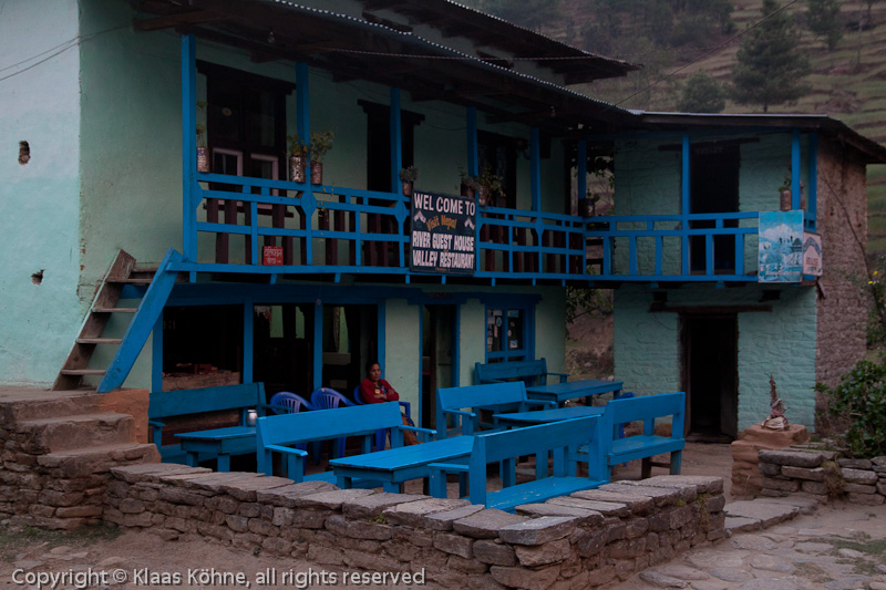 Im "River Guest House" checke ich für die letzte Nacht ein. Jetzt muss nur noch der Bus nach Kathmandu kommen. Der Fußmarsch- und Rucksackschlepp-Teil der Tour ist hier und jetzt BEENDET!