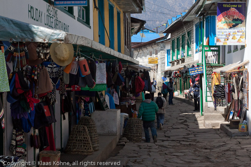 Im Zentrum von Lukla. Ab hier beginnt der "Gringo-Trail". Solche Shops habe ich auf der bisherigen Strecke jedenfalls nicht gesehen.