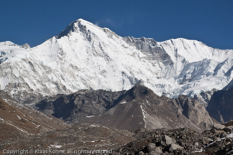 Der riesige Cho Oyu mit dem "mickrigen" Ngozumpa Ri (halbrechts). Und doch ist dieser Buckel 700m höher als der Montblanc...
