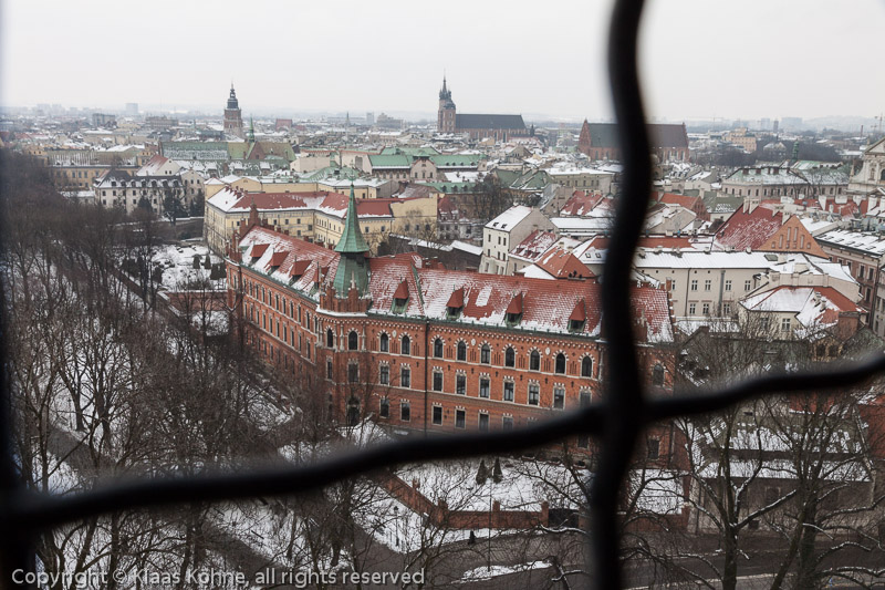 Blick von ganz oben auf das winterliche Krakau