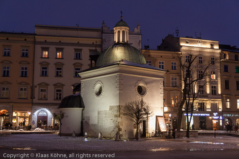 Die Adalbertkirche (Kosciól Sw. Wojciecha) wurde Anfang des 12. Jahrhunderts fertig gestellt und ist damit das älteste Gebäude auf dem Rynek.