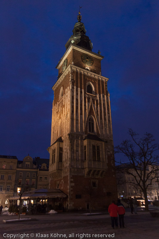 Der gotische Rathausturm (Wieza Ratuszowa) von 1383 ist der einzige Überrest des alten Krakauer Rathauses, das zu Beginn des 19. Jahrhunderts abgerissen wurde.