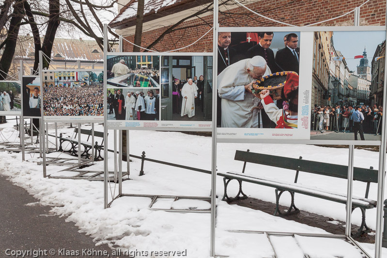 Open-Air-Ausstellung mit Bildern der Besuche von Johannes Paul II. in Krakau