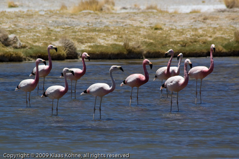 Eine Gruppe Andenflamingos (Phoenicoparrus andinus). Langsam pirsche ich mich näher. Gut, dass ich mein Tele dabei habe!