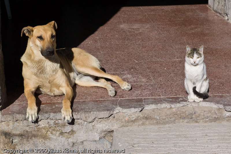 Wieder zurück vom "Depot-Ausflug". Hier die Hütten-Maskottchen. Der Hund möchte dauernd gekrault werden, die Katze eher nicht. Hauptsache, sie zerkratzt beim Herumturnen nicht die Daunenschlafsäcke...