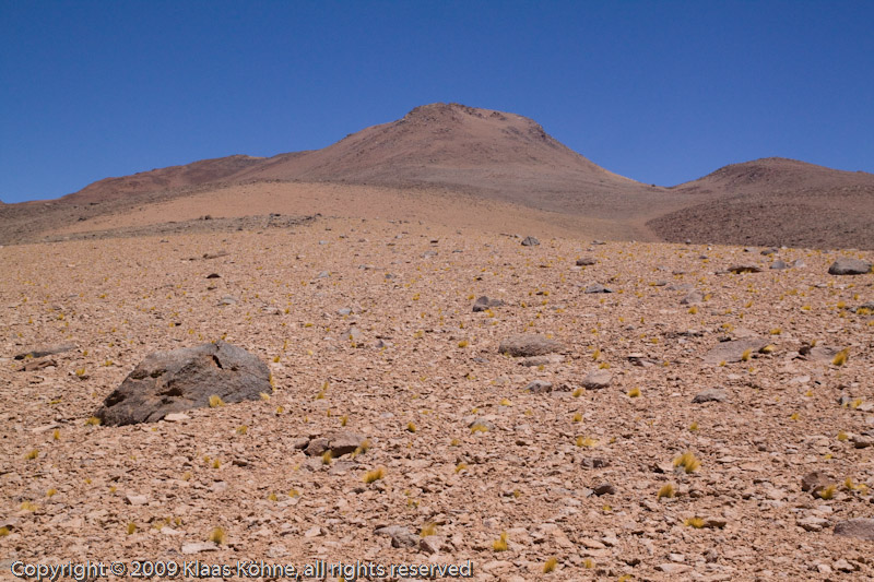 1.12.: Aufstieg zum Cerro Bertrand. Der Blick zum Gipfel auf knapp 5000m Höhe. Ich hab zwar keine wirklichen Höhenprobleme, merke aber schon, dass ich erst vor drei Tagen aus dem Tiefland nach Las Grutas gekommen bin.