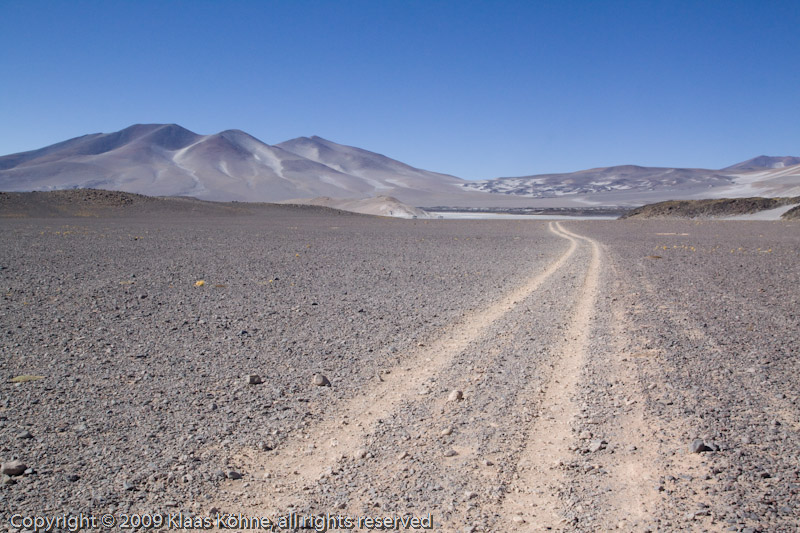 30.11.: Es gehe ich zum ersten Mal mit knapp 20kg (Mampf, Gas, 10l Wasser) auf dem Rücken in die Puna, um ein erstes Depot anzulegen. Auf der bekannte Strecke an den Termas vorbei und weiter auf der Allradpiste. Alles ganz schön weitläufig hier...