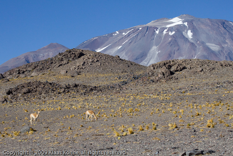 Vicunjas (Vicugna vicugna) vor dem Incahuasi. Ein wunderschönes Bild! Das muss gebührend fotografiert werden, auch wenn ich knapp 30kg auf dem Rücken habe.