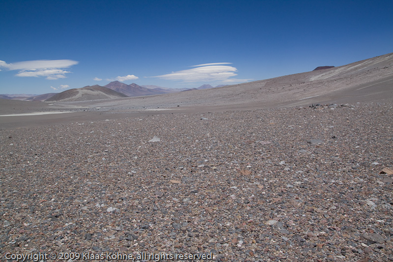 Blick von der Passhöhe Richtung Süden. Ganz rechts der Kegel des Vulkans Negro. Bis dahin wollte ich heute eigentlich noch kommen, aber das wird wohl nix mehr.