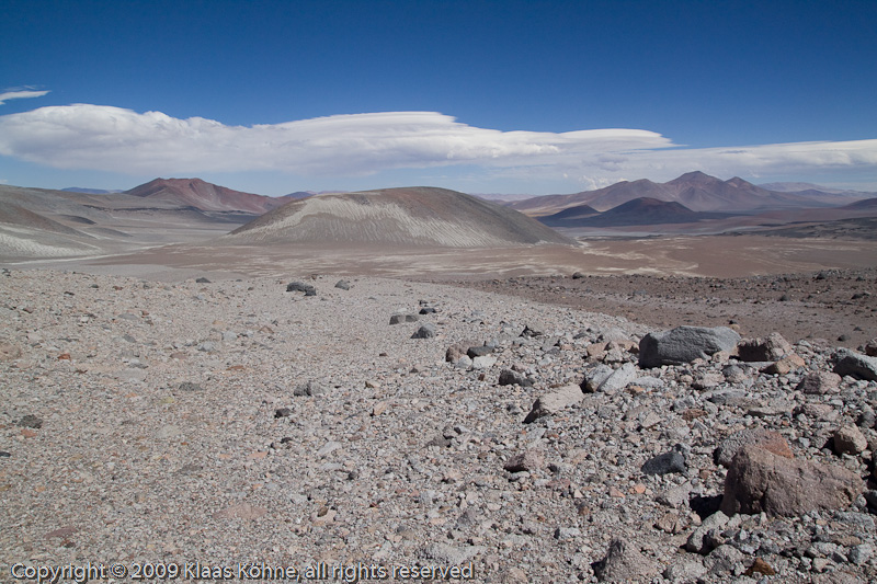 Von den Fraile-Rippen geht es wieder etwas abwärts. Tja, wie weit soll ich heute gehen. Nicht zu weit, schließlich muss ich morgen der Rest des Gepäcks vom Incahuasi-Pass nachholen. Finde ein ganz nettes Pätzchen auf knapp 5000m.
