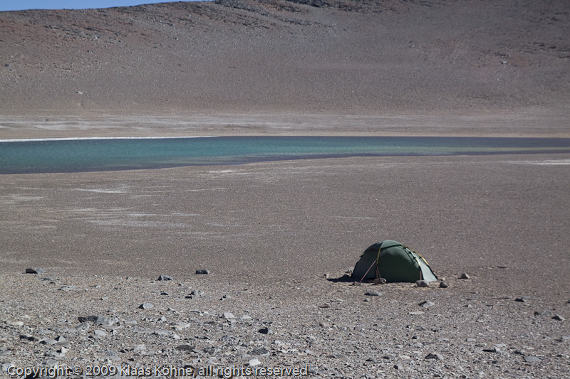 Um halb 6 bin ich wieder beim Zelt und kann sagen: Puna-Traverse FINITO! Stramme Leistung, Alter! Mann, bin ich erleichtert, dass ich diese Tortur hinter mir habe. Never ever again, sowas. Aber ich wollte ja ein definitives Solo-Ding durchziehen. Als kostengünstiges Everest-Trostpflaster sozusagen. Gleich noch Wasser holen, aber erstmal hinhauen und das Gefühl des "sense of achievement" genießen...