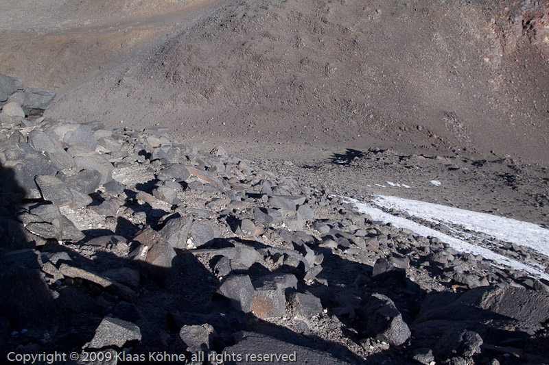 Blick runter zum Sattel. Das wird nochmal ´ne haarige Angelegenheit. Ganz vorsichtig geht´s Meter für Meter abwärts. Entwarnung gibt´s erst unten.