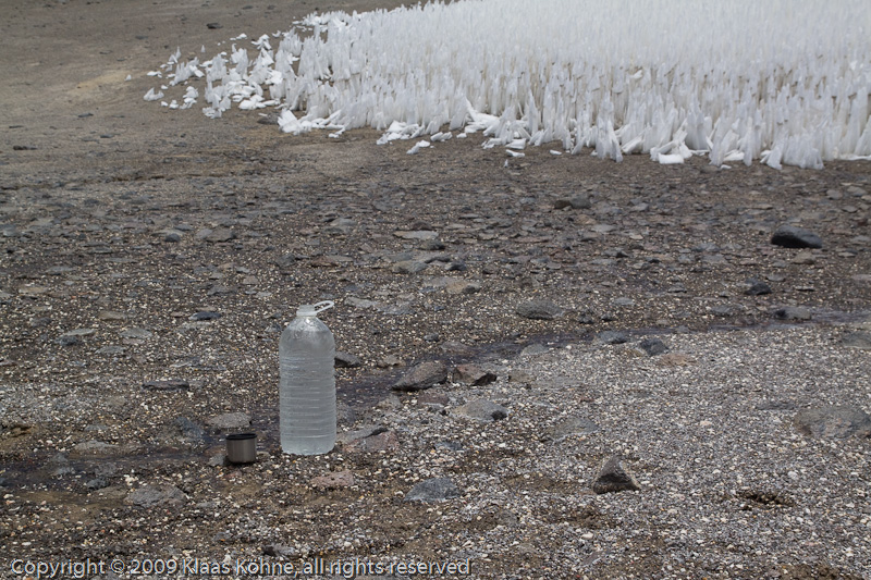 Wasser zapfen an der Penitentes-Tränke. Business as usual. Zwei Liter für heute, drei für morgen.