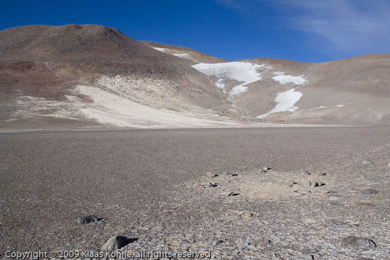 8h05 - back to the people! Es beginnt das letzte Kapitel eines (für mich) wahrscheinlich unwiederholbaren Abenteuers. Daher wohl auch die deutlich spürbare Melancholie. Sollte ich dies hier irgendwann noch einmal sehen, z.B. vom Westgipfel des Ojos, werde ich wahrscheinlich von Nostalgie-Krämpfen geschüttelt. El Arenal, du warst ein gutes Basislager! Fast eine komplette Woche habe ich hier verbracht.