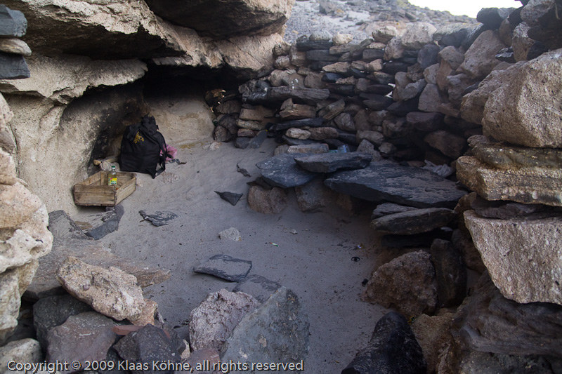 Ein Stück weiter liegt an einem Hang der Lagerplatz Aguas Calientes. Ein erster Hauch von Zivilisation nach zwei Wochen purer Natur. Leider ist er auch ziemlich vermüllt, was meine euphorische Stimmung wieder etwas dämpft. Der schwarze Sack gehört übrigens den beiden Argentiniern und enthält Proviant für ihren Rückweg.